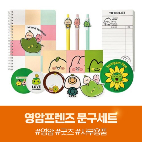 (영암문화관광재단) 영암프렌즈 문구 볼펜 노트 메모지 핀버튼 그립톡 티코스터